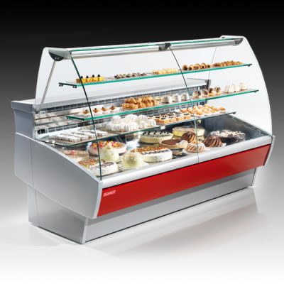 The higher level pastry finds its ideal placement in this refrigerated serve over cabinet, thanks to the wide vertically developed display surface, the efficient illumination and maximum visibility of the displayed product. Both the open and closed spherical corners enhance the round shape of the counter and allow for various display solutions.